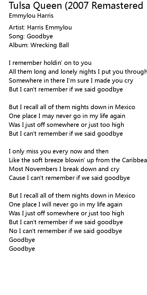 No I can't remember if we said goodbye |