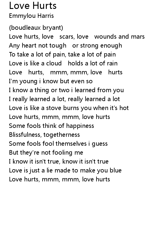 | Love hurts, mmm, mmm, love hurts |