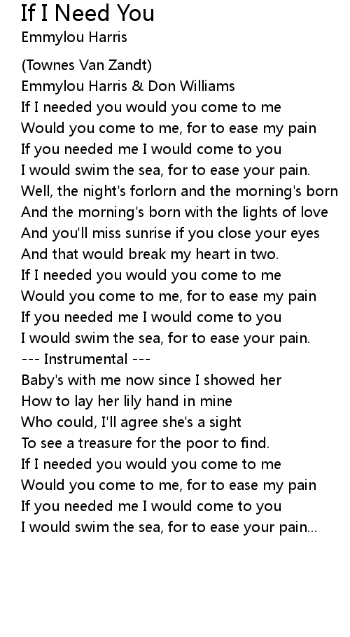 If you needed me I would come to you |