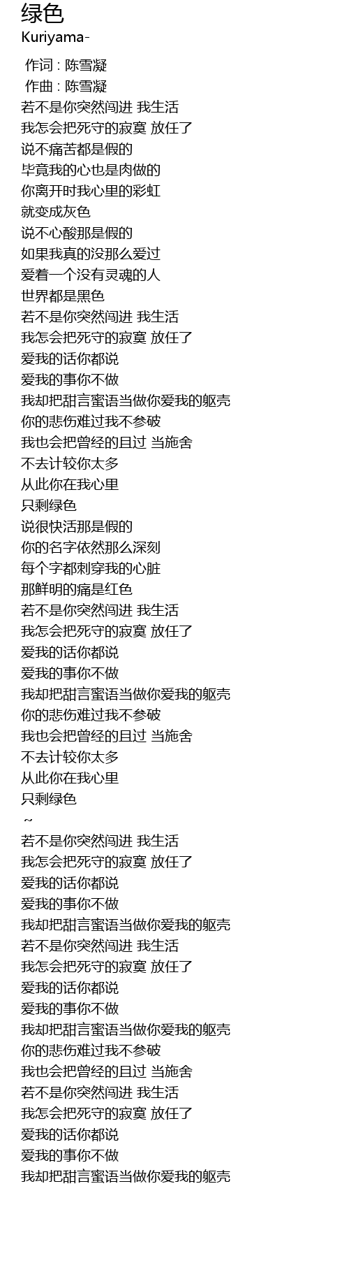 | [00:00.000] | 作词 : 陈雪凝 |
