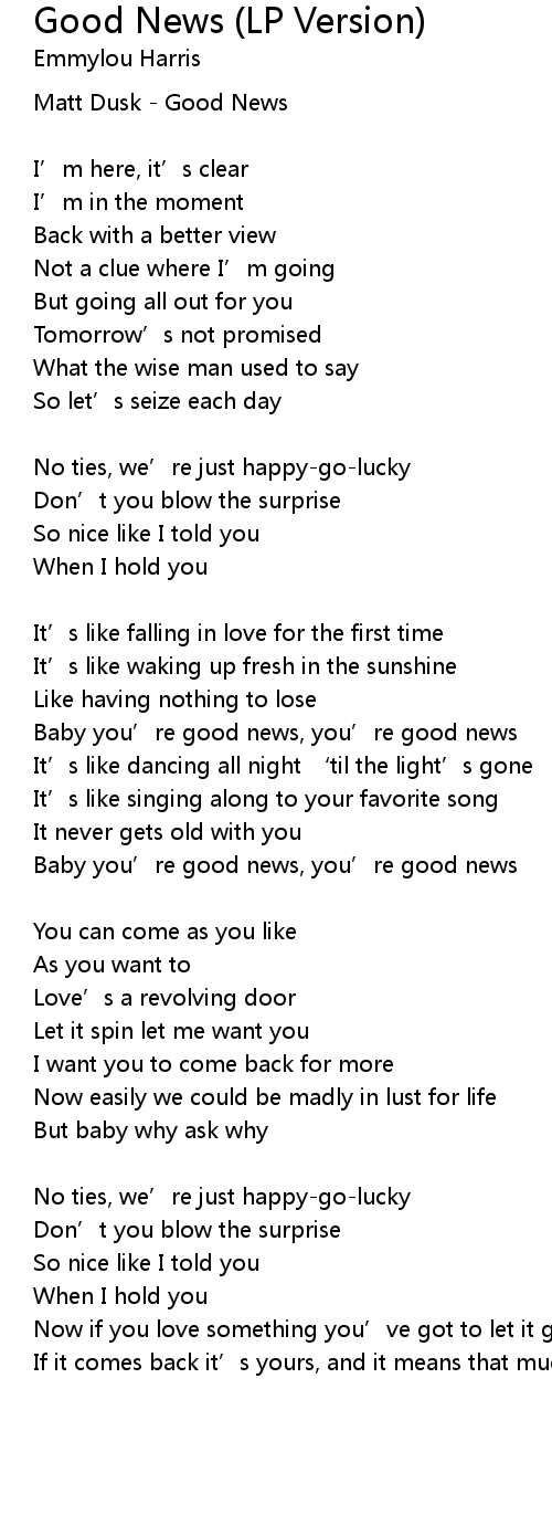 | Baby you' re good news, you' re good news | |