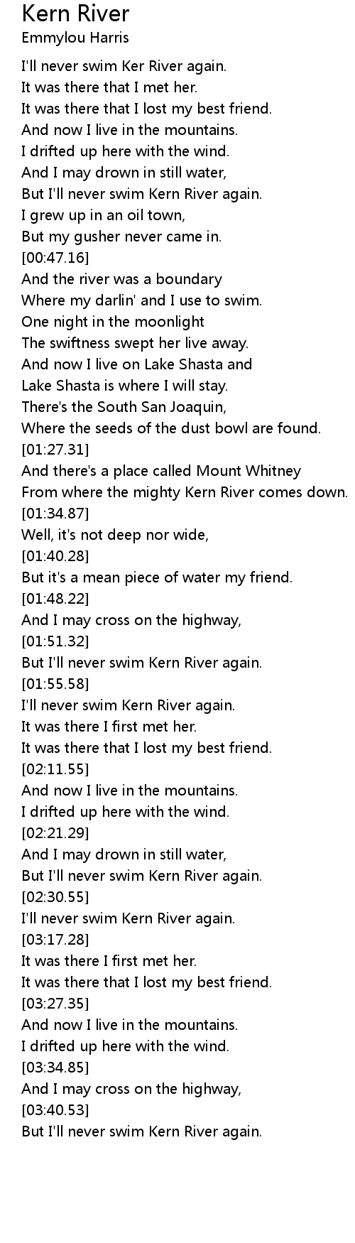 But I'll never swim Kern River again. |