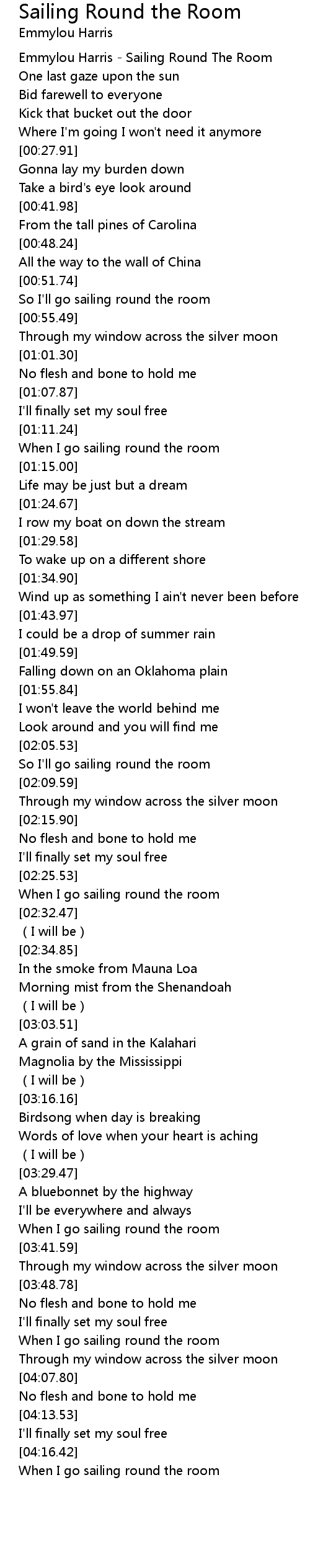 | [00:00.17] | Emmylou Harris Sailing Round The Room |