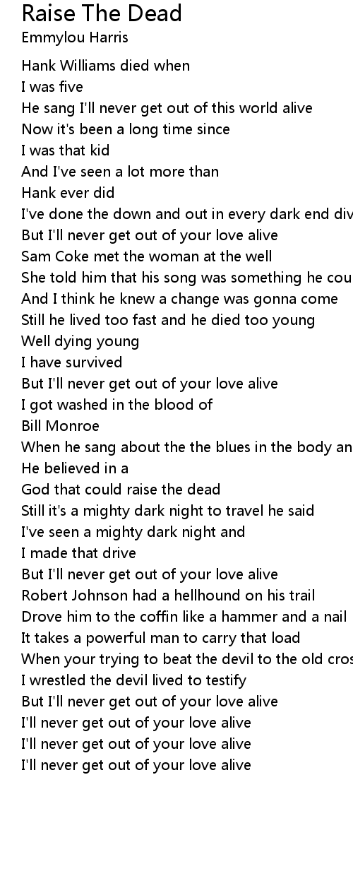 But I'll never get out of your love alive |