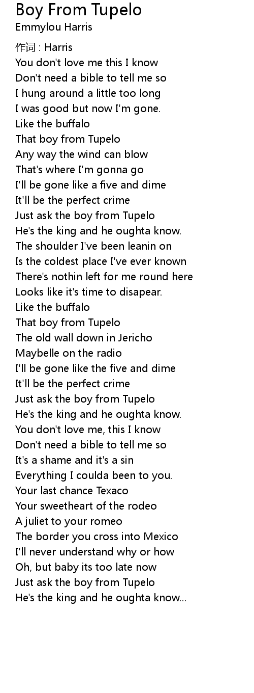 | That boy from Tupelo | |