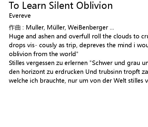 | Stilles vergessen zu erlernen "Schwer und grau und ubervoll walzen sich Wolken, den horizont zu erdrucken Und trubsinn tropft zah wie sirup, raubt die Sinne, welche ich brauchte, nur um von der Welt stilles vergessen zu erlernen |