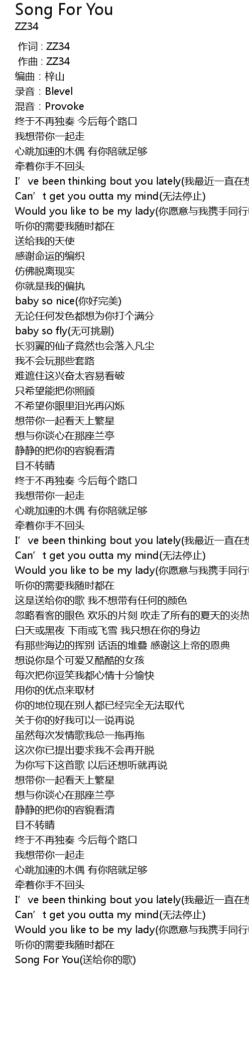 | [00:35.193] | I' ve been thinking bout you lately wǒ zuì jìn yī zhí zài xiǎng nǐ |