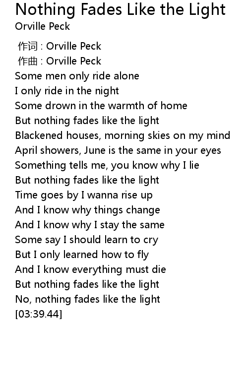 | [03:31.28] | No, nothing fades like the light |