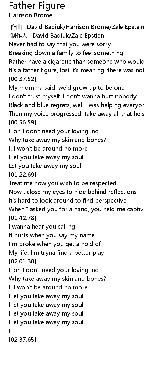 | [00:32.74] | It's a father figure, lost it's meaning, there was nothing |