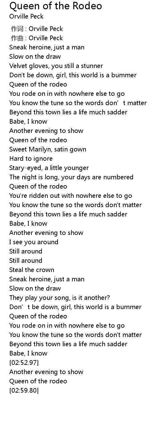 | [02:56.43] | Queen of the rodeo |