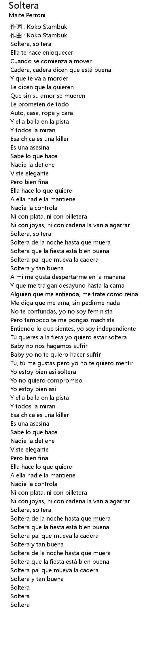 | [02:35.325] | Soltera, soltera |