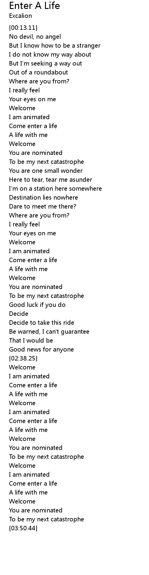 | [03:10.76] | Come enter a life |