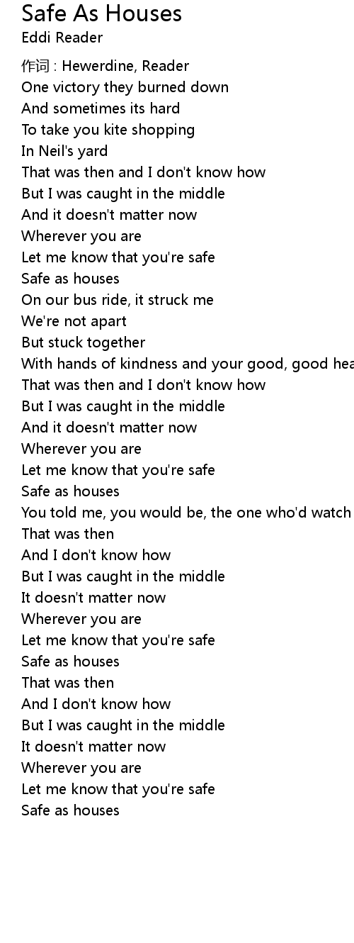 | Song | Safe As Houses |
