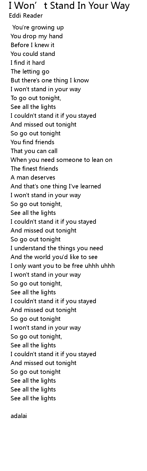 I won't stand in your way |