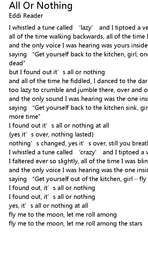 | I whistled a tune called ‘lazy’ and I tiptoed a very tight line | |