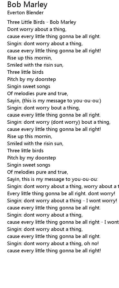 Singin: dont worry about a thing, worry about a thing, oh! |