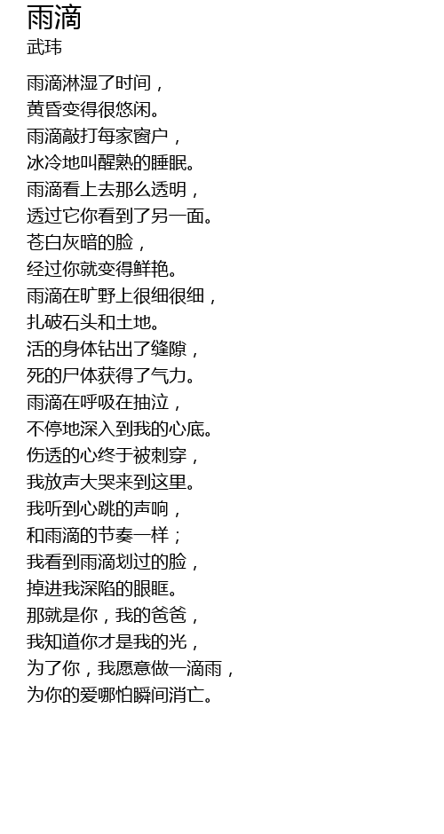 | wèi le nǐ, wǒ yuàn yì zuò yī dī yǔ, | |