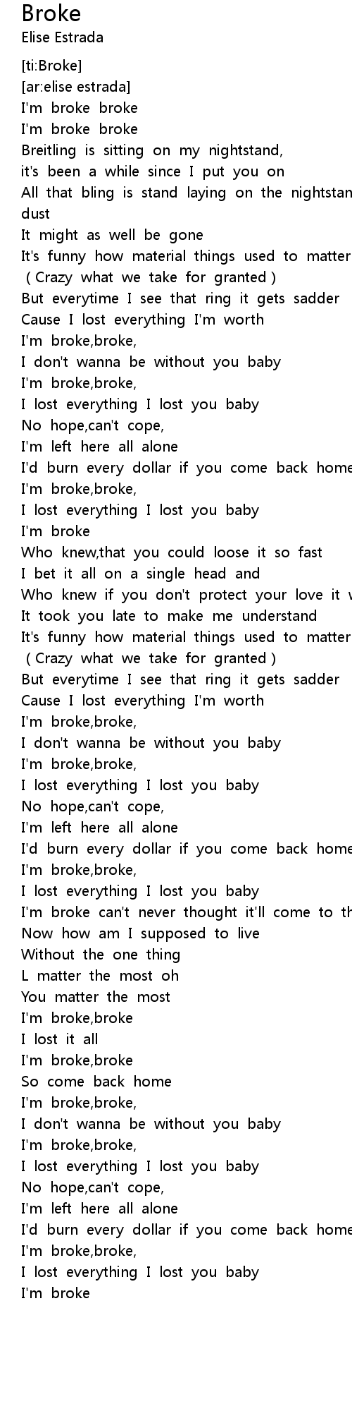 | [02:05.28] | I' m broke can' t never thought it' ll come to this |