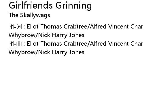 | [00:00.000] | 作曲 : Eliot Thomas Crabtree/Alfred Vincent Charles Smith/Benjamin Whybrow/Nick Harry Jones |