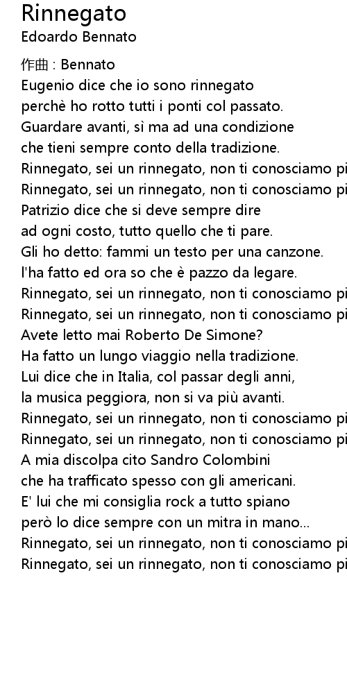 | Rinnegato, sei un rinnegato, non ti conosciamo piu... |