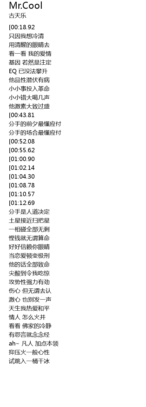 | [02:00.77][00:52.08] | 担当Mr. Cool 我有我风度 |