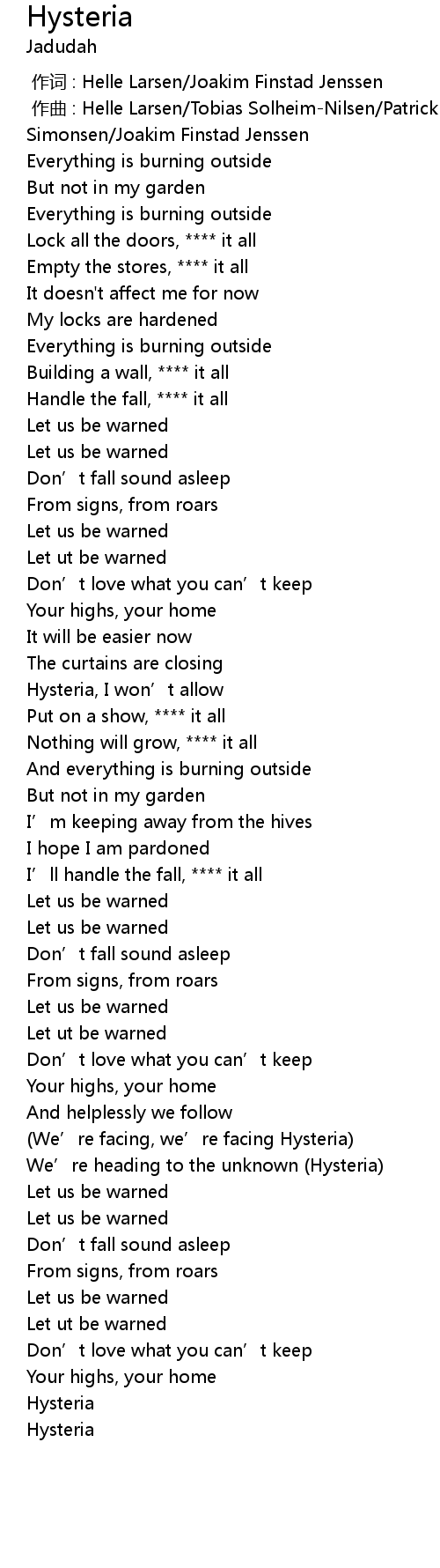 | [02:26.90] | (We’re facing, we’re facing Hysteria) |