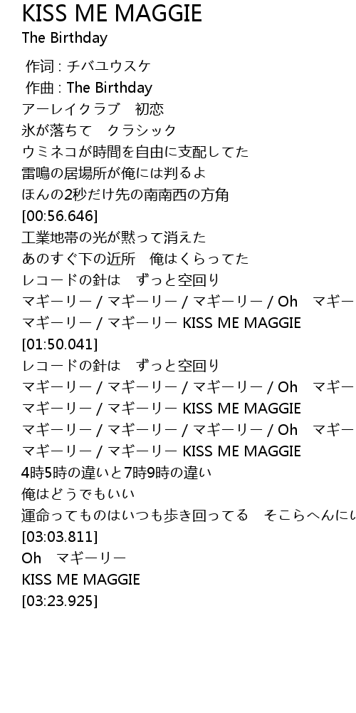 | [01:45.652] | マギーリー/マギーリー KISS ME MAGGIE |