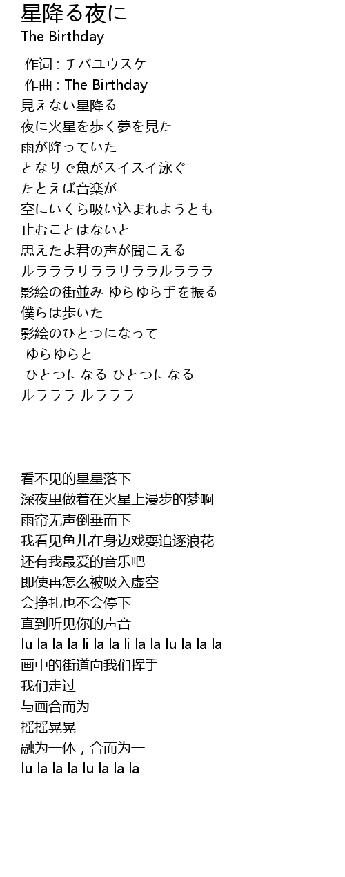 | [00:01.000] | zuò qǔ : The Birthday |