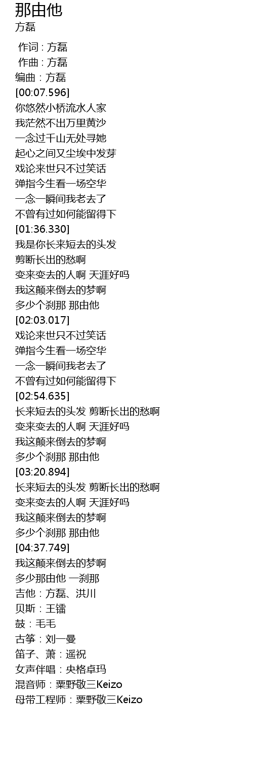 | [00:00.000] | 作词 : 方磊 |