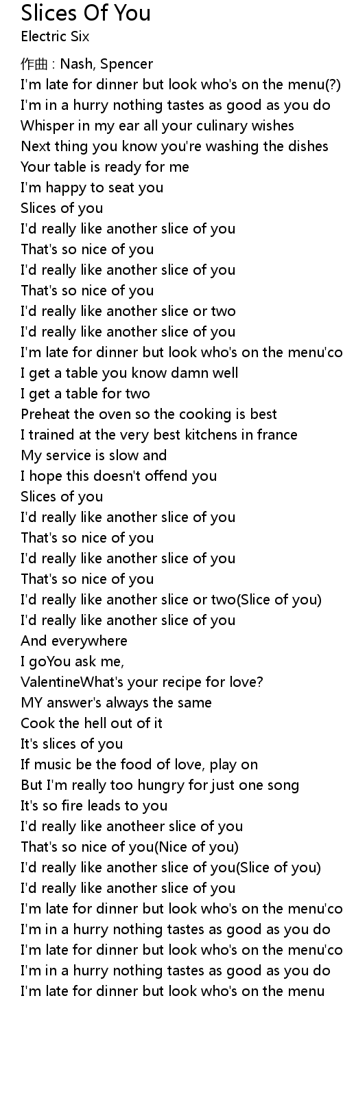 | I' m late for dinner but look who' s on the menu' cos when | |