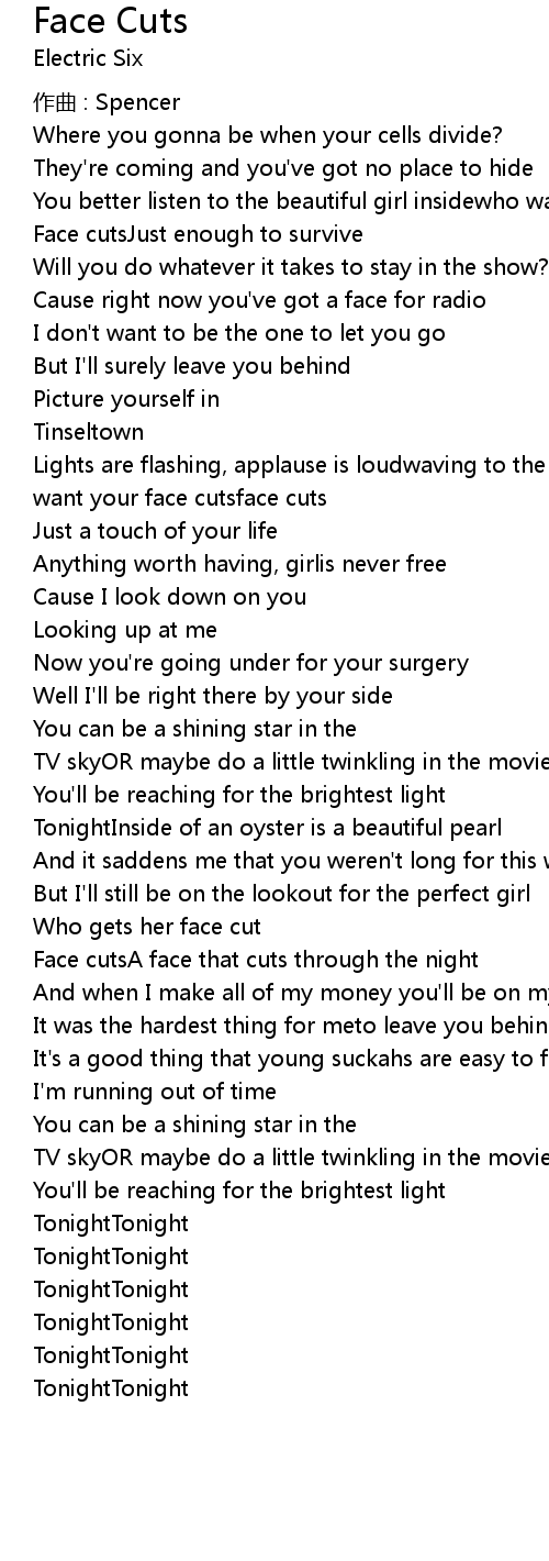| You better listen to the beautiful girl insidewho wants her face cuts | |