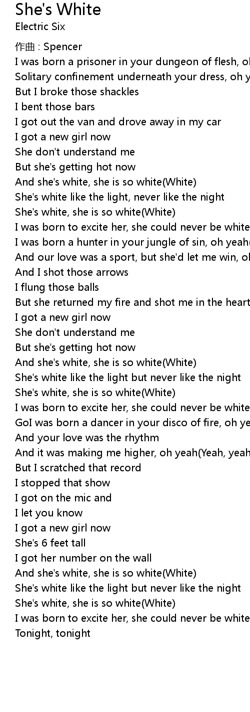 | I was born to excite her, she could never be whiter tonight Tonight | |