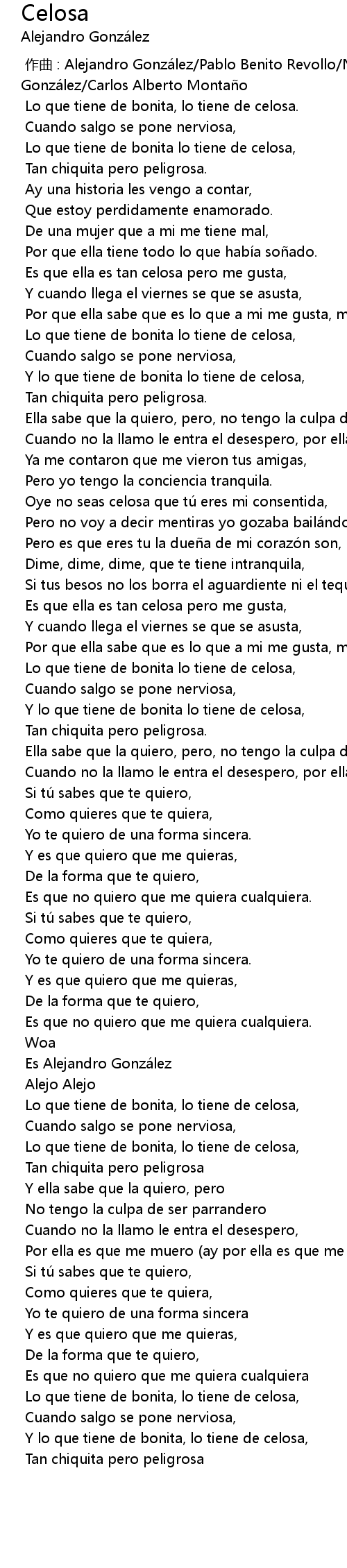 | [00:00.014] | Lo que tiene de bonita, lo tiene de celosa. |