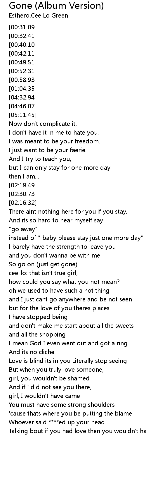 instead of " baby please stay just one more day" |