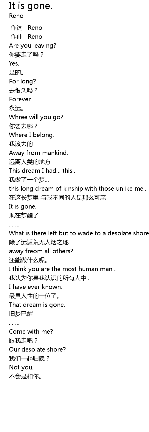 | [00:00.000] | 作词 : Reno |