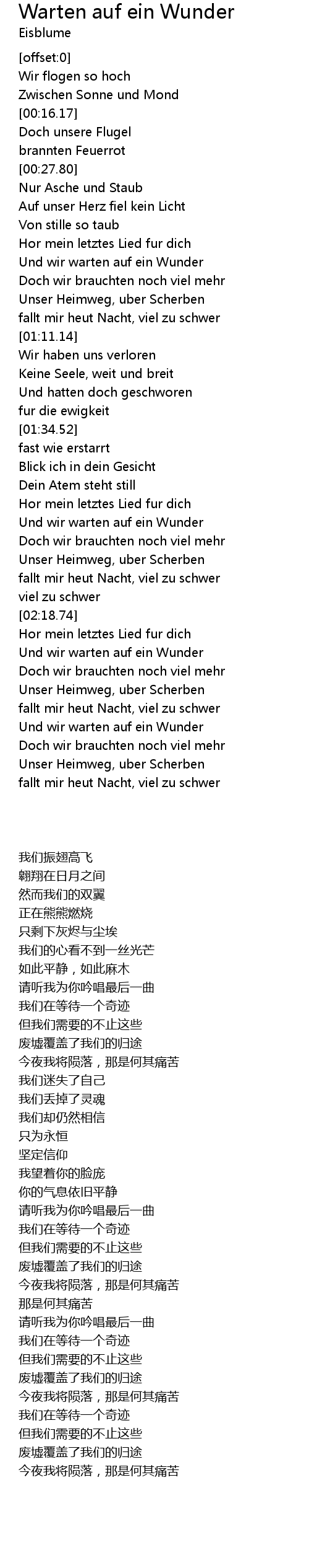 | [01:55.83] | Und wir warten auf ein Wunder |