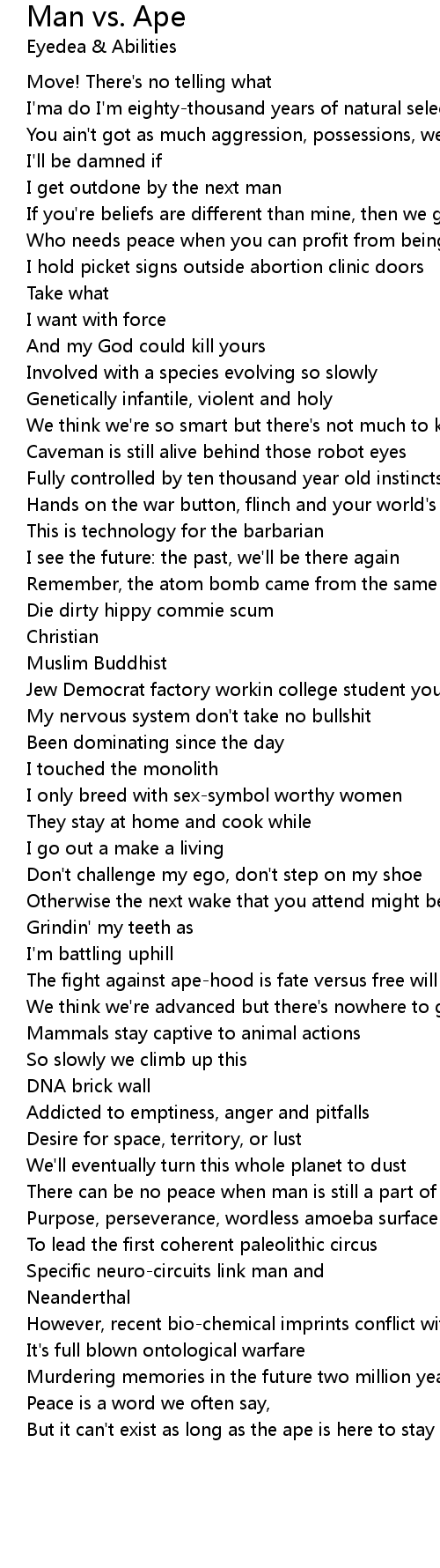 But it can't exist as long as the ape is here to stay |