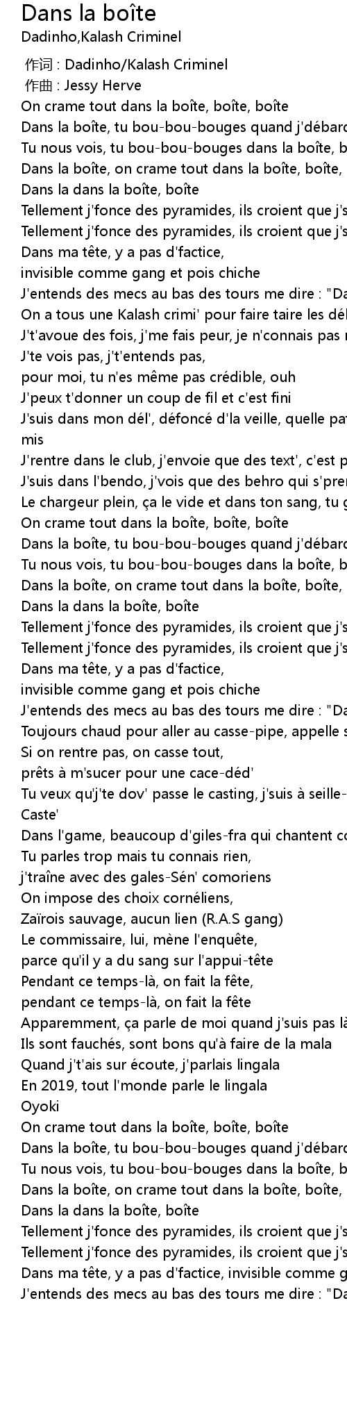 | [02:11.19] | Dans la boîte, on crame tout dans la boîte, boîte, boîte |