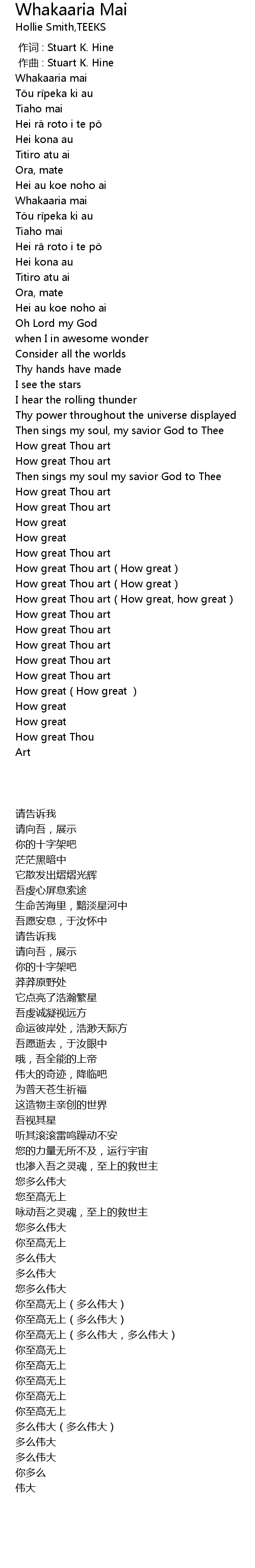 | [04:39.29] | How great Thou art ( How great, how great ) |