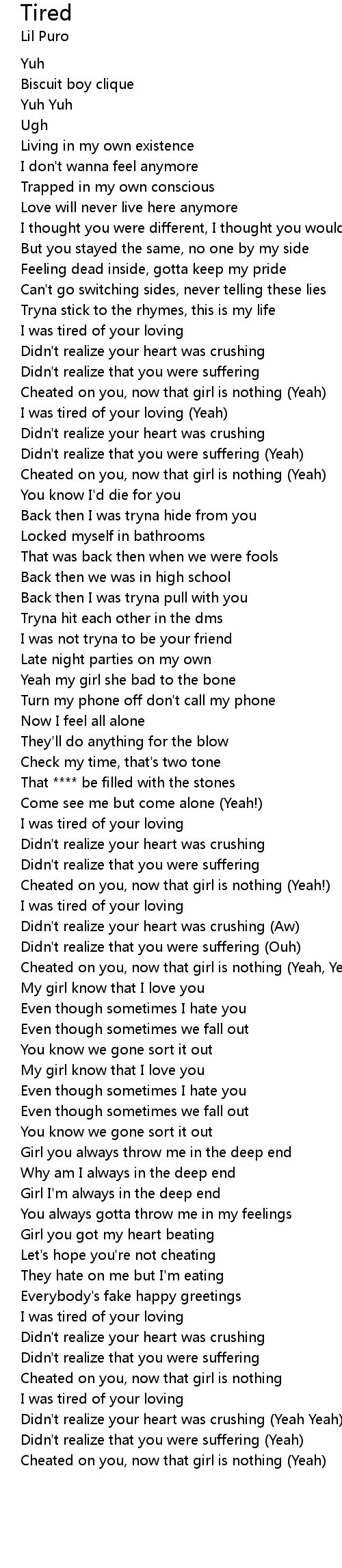 I was tired of your loving |