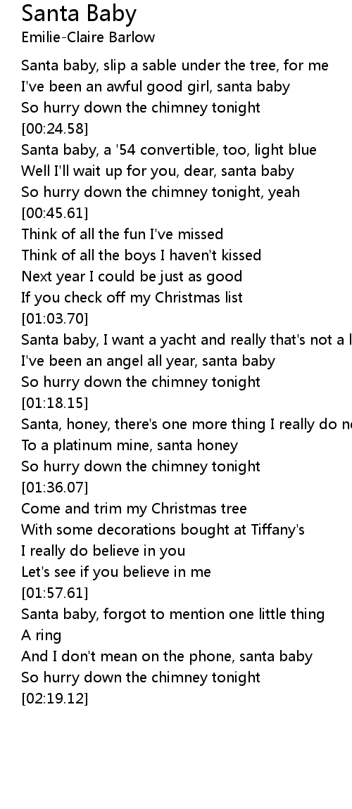 Well I'll wait up for you, dear, santa baby |