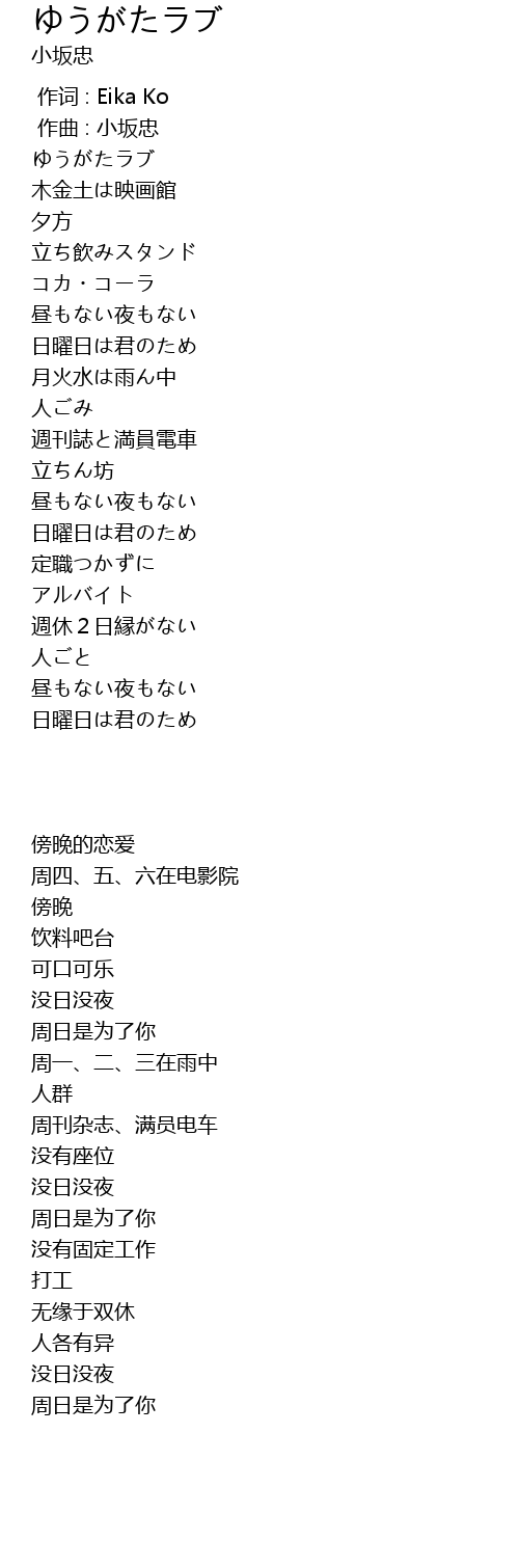 | [01:48.223] | 日曜日は君のため |