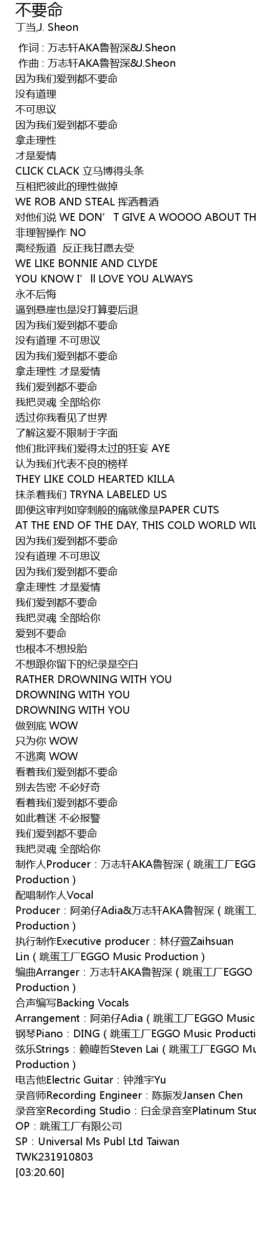 | [03:17.42] | 配唱制作人Vocal Producer:阿弟仔Adia&万志轩AKA鲁智深(跳蛋工厂EGGO Music Production) |