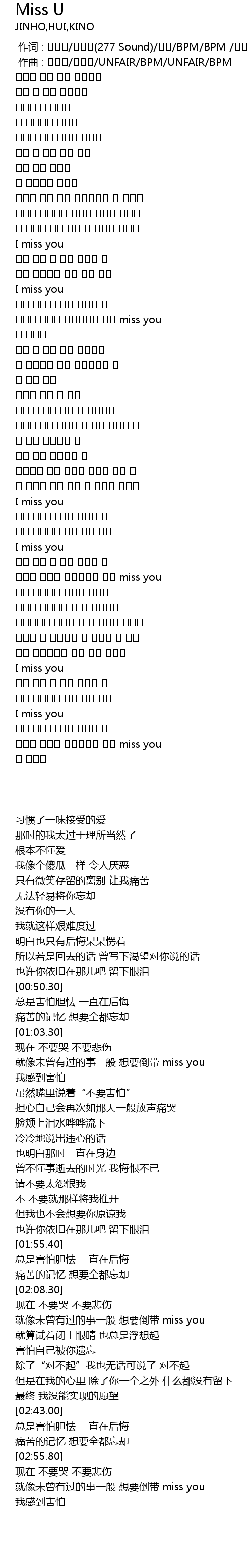| [01:09.50] | 없었던 일처럼 되돌리고만 싶어 miss you |