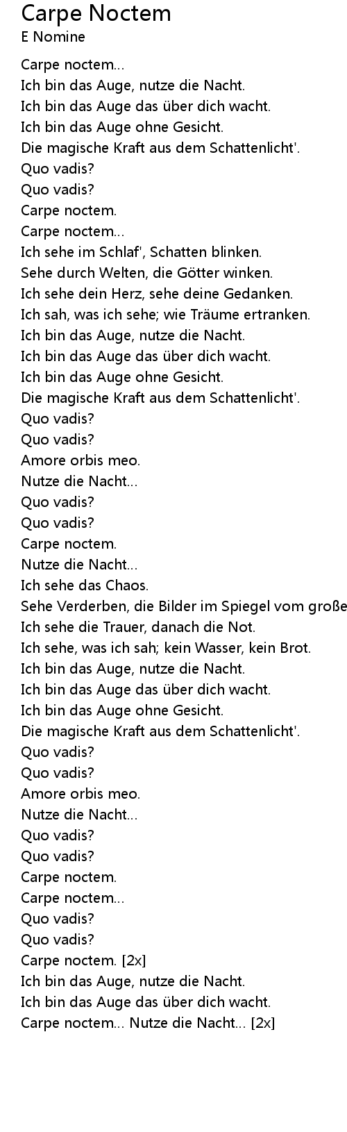| [2x] | Carpe noctem Nutze die Nacht |
