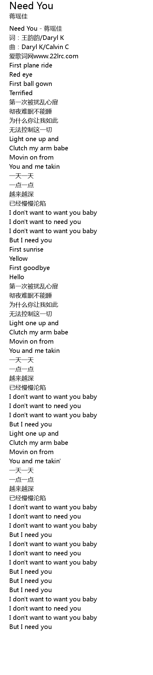 | [00:00.21] | Need You jiǎng yáo jiā |