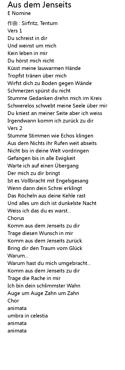 | Song | Aus dem Jenseits |
