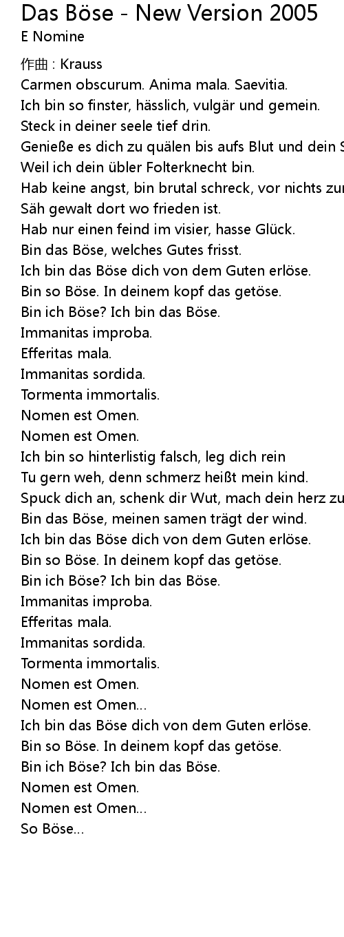 | Bin ich B se? Ich bin das B se. | |