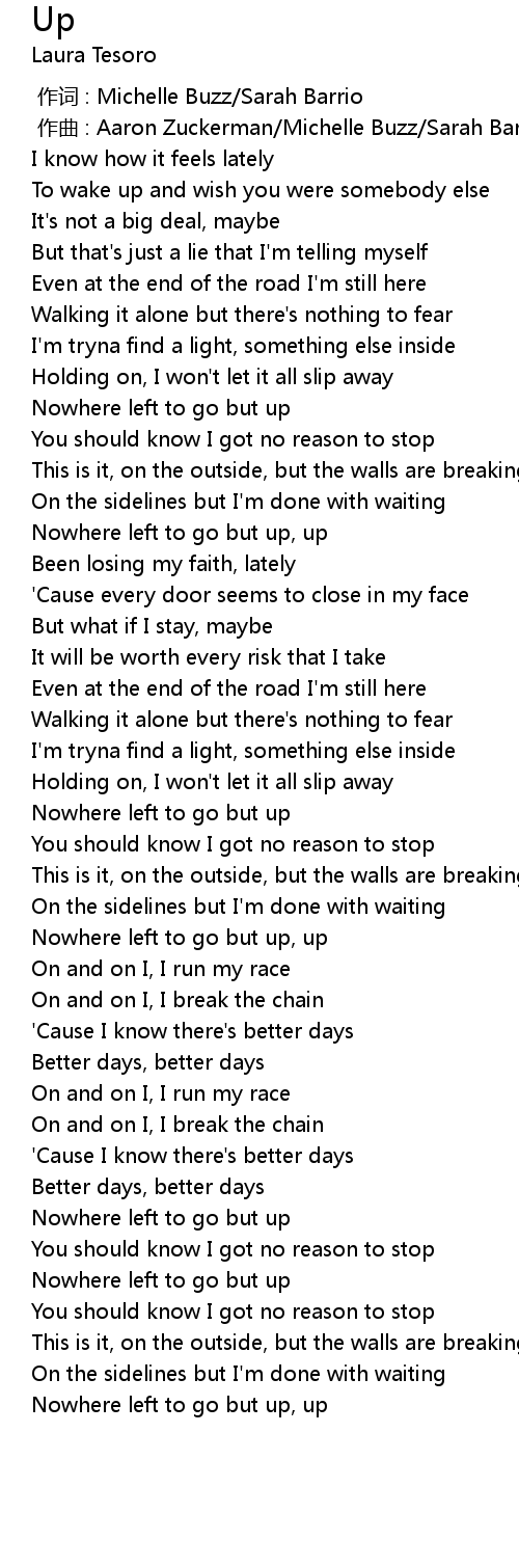 | [03:02.59] | Nowhere left to go but up, up |