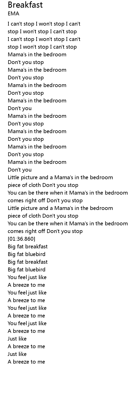 | [01:31.740] | You can be there when it Mama's in the bedroom |
